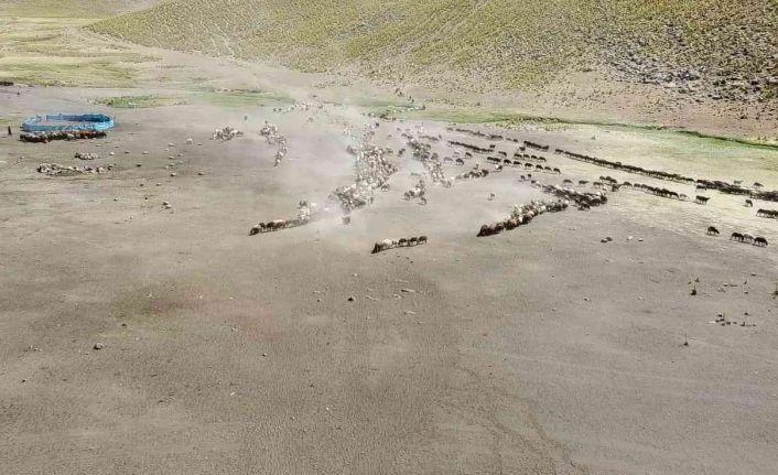 VAN (İHA) – Van’ın Erciş ilçesindeki 3 bin 500 rakımlı Ağırkaya Yaylası’nda göçerlerin zorlu mesaisi devam ediyor.