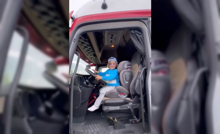 Kullandığı araçlar ile gündeme gelen 4 yaşındaki Zayn Sofuoğlu, bu kez de boyundan kat kat büyüklükteki tırın çekicisini kullandı.