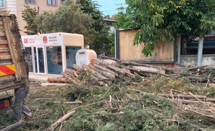 Bilecik’te bir cami bahçesinde bazıları yaklaşık 40 yıllık olduğu belirtilen onlarca çam ağacı camiye zarar verdiği gerekçesiyle kesildi. Çam ağaçlarının kesilmesine mahalleliler tepki gösterirken, kesilen çam ağaçları kamyonlara yüklenerek taşındı.