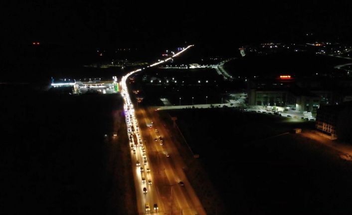 Ulaşımda 43 ilin geçiş güzergahında yer alan Kırıkkale’deki kilit kavşakta gece yarısı yaşanan trafik yoğunluğu "drone" ile havadan görüntülendi.