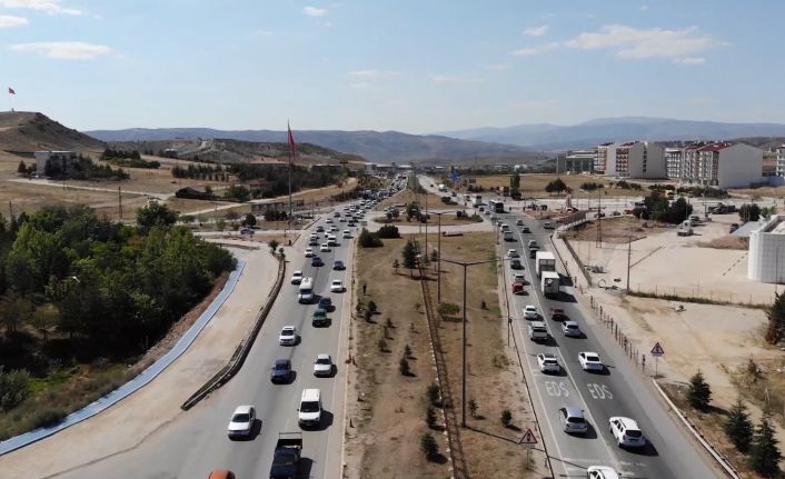 Ulaşımda 43 ilin geçiş güzergahındaki kilit kavşak Kırıkkale’de, Kurban Bayramı tatili dolayısıyla 9 günlük tatilini, memleketlerinde ya da tatil lokasyonlarında geçirmek isteyen vatandaşlar, trafik yoğunluğuna neden oldu. İstanbul, Ankara, Bursa, İzmir gibi büyük şehirlerden Anadolu’ya gitmek için yollara akın edenler kilit kavşakta trafiğe takıldı. Kara yolundaki trafik kuyruğu yaklaşık 10 kilometreyi buldu. Araç kuyruğu, drone ile havadan görüntülendi.