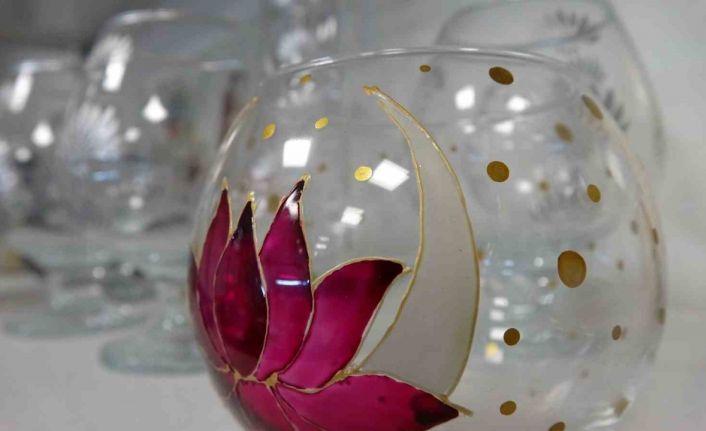Kadınlar kursta hem sanat öğrenerek boş vakitlerini değerlendiriyor hem de çöpe gidecek olan cam malzemelerin geri dönüşümünü sağlıyor.