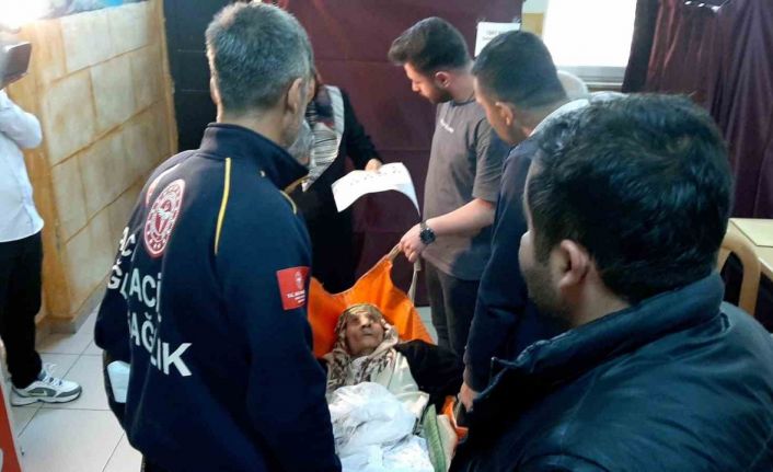 Adıyaman’da 93 yaşındaki Gaffure Asnuk, ambulans ile getirildiği okulun içine hasta taşıma brandasına konularak oyunu kullandı.
