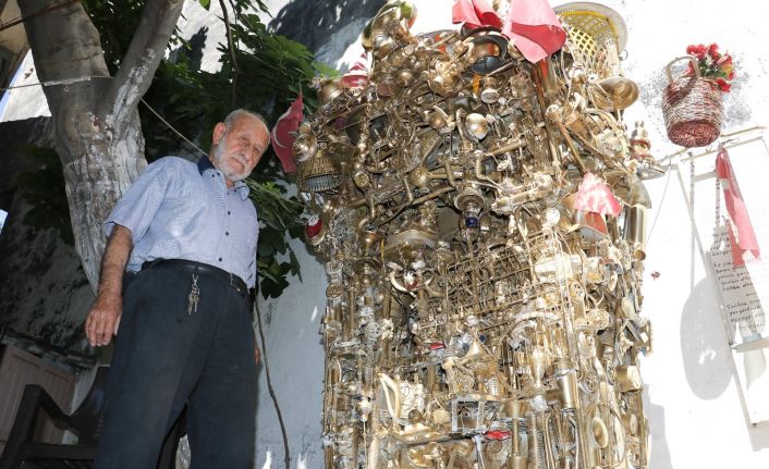 Kahramanmaraş’ta 77 yaşındaki Abdullah Kozan, 7 yıldır topladığı 10 bin metal ve plastik eşya parçalarından yapıp "Bin bir alem" adını verdiği eserini "sıfır atık" projesinin öncüsü Cumhurbaşkanı Recep Tayyip Erdoğan’ın eşi Emine Erdoğan’a hediye etmek istiyor.