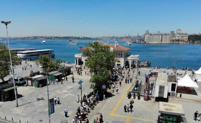 Kurban Bayramı’nın son gününde güzel havayı fırsat bilen vatandaşlar, Adalar’a gitmek için Kadıköy’de Adalar iskelesine akın etti. Vapurlara binmek isteyenlerin oluşturduğu uzun kuyruk havadan görüntülendi.