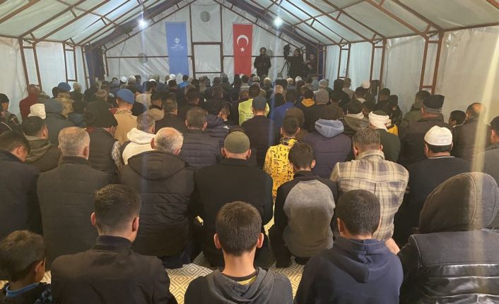 Yıkıcı depremin yaşandığı Adıyaman’da Ramazan ayının ilk teravih namazı kurulan çadırlarda kılındı.
