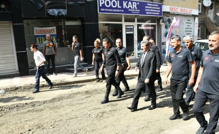 Samsun Valisi Orhan Tavlı ve AFAD Başkanı Okay Memiş, dün yoğun yağış sonrası meydana gelen sel ve su baskınından etkilenen İlkadım ilçesinde incelemelerde bulunarak, selden etkilenen esnafa ve vatandaşlara ‘geçmiş olsun’ dileklerini ilettiler. Hasar tespit ve zarar çalışmalarının bugün itibarıyla başladığını ve AFAD Başkanlığı başta olmak üzere ilgili diğer kurumlarla birlikte titizlikle sürdürüldüğünü belirten Vali Tavlı, altyapı onarım ve yolların temizlik çalışmalarının Büyükşehir Belediyesi, DSİ 7. Bölge Müdürlüğü, Karayolları 7. Bölge Müdürlüğü ve ilçe belediyeleri başta olmak üzere ilgili kurumlarca hızla yürütüldüğünü ve en kısa zamanda tamamlanacağını söyledi.