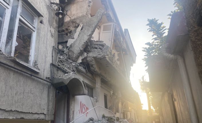 Ağır hasarlı bina mahalleliyi korkutuyor