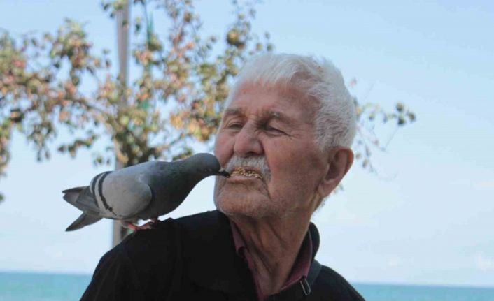 Ordu’nun Altınordu ilçesinde yaşayan 92 yaşındaki Reşat Çolak, her gün ilçenin Akyazı Mahallesi’nde bulunan sahil bölgesine gelerek güvercinleri ağzı ile besliyor.