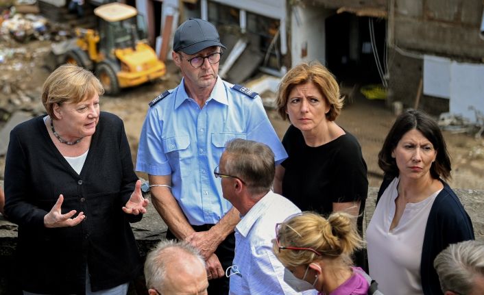 Almanya Başbakanı Angela Merkel, sel faciasında 165 kişinin hayatını kaybettiği bölgelerden Rheinland-Pfalz eyaletindeki Ahrweiler bölgesini ziyaret etti. Rheinland-Pfalz Eyalet Başbakanı Malu Dreyer ile birlikte afet bölgesinde incelemelerde bulunan Merkel, yetkililerden bilgi aldı.