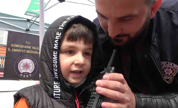 Gümüşhane’de Polis Haftası ve Türk Polis Teşkilatı’nın 177. kuruluş yıldönümü çeşitli etkinliklerle kutlanıyor. İl Emniyet Müdürlüğü de etkinlikler kapsamında Fatih Parkı’nda bağlı birimlerine ait stantlar kurdu. Kurulan stantlarda birimlerin çalışma sistemine dair vatandaşlara ve çocuklara bilgiler verildi. Etkinlikler kapsamında, polis telsizlerini kullanmayı öğrenen çocuklar ise telsiz kullanırken polislerden şeker istedi. Telsizin diğer ucunda görevli Yunus Polisi İlkay Yaş ve bir kadın polis bu isteği kırmayarak çocuklara şeker verdi. Mutlulukları gözlerinden okunan çocuklar, polis abilerine ve ablalarına teşekkür ederken, polis haftasını kutlamayı da unutmadı.