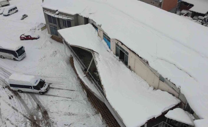 Amasya’nın Taşova ilçesinde yoğun kar yağışı nedeniyle biriken kar, Taşova Otogarı’nın çatısının çökmesine neden oldu.