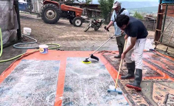 Amasyalı çiftçi halılarını tırpanla yıkadı: "Halı yıkamada çığır açtık"