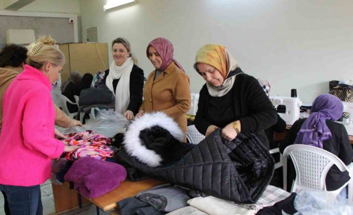 Amasyalılar depremzedeler için kıyafet ve battaniye dikiyor