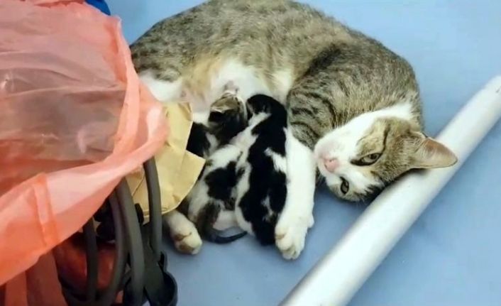 SAKARYA (İHA) – Sakarya’nın Karasu ilçesinde hastanenin acil servisinde ağzında taşıdığı yavrusu ile görüntülenen anne kedinin fedakarlığı duygulandırdı. Hastanenin güvenlik personeli anne şefkatinin cep telefonu kamerasına yansıdığı olayı, “O kedi aslında son günlerde burada dolanıyordu. Havada yağmurluydu muhtemelen yağmurdan korunmak için yavrularını içeride yapmış.” dedi.