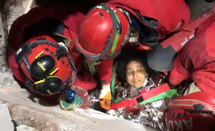 Kahramanmaraş merkezli olan ve 10 ilde büyük yıkıma sebep olan 7.7 ve 7.6 büyüklüğündeki depremlerin ardından, Türkiye’nin dört bir yanından gelen ekiplerin arama kurtarma çalışmaları devam ediyor. Kocaeli’den Hatay’a giden AKUT ekipleri, ses duyulması üzerine bir binadaki çalışmalara yoğunlaştı. Çalışmaların neticesinde enkaz altında kalan anne ve oğul kurtarıldı. İsmet Bayrak’ın 112. saatte enkazdan sağ çıkarıldığı öğrenilirken 2 saat sonrasında ise anne Hülya Bayrak kurtarıldı. Çıkarıldığı gibi serum bağlanıp üzerine alüminyum battaniye serilen Hülya Bayrak, AKUT ekipleri tarafından sağlık ekiplerine teslim edildi. Öte yandan, aileyle beraber yaşayan kedi de ekipler tarafından çıkarıldı.