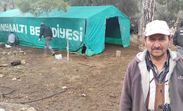 Antalya’nın Konyaaltı ilçesinde belediye, dolu yağışı sonrası ağılı çöken ve küçükbaş hayvanları açıkta kalan vatandaşa çadır desteği sağladı.