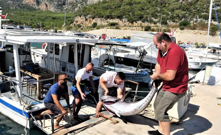 Antalya’da balıkçı barınağından balıkçı teknesi ile sabah 05.00 sıralarında denize açılan profesyonel balıkçı Yusuf Kara ve amatör balıkçı Coşkun Demir, yaklaşık 15 gün önce izine rastladıkları orkinos balığının bulunduğu alana yeniden gitti. İki balıkçının yaklaşık 30 dakika süren avlanmalarında oltalarına dev bir balık takıldı. Oltaya takılan 1.70 boyunda, yaklaşık 140 kilo ağırlığındaki orkinos tekneyi açığa sürükledi. İki balıkçı diğer balıkçıların da yardımı ile balığı 4.5 saat sonra tekneye aldı. Balıkçı barınağı limanına getirilen balık, burada 4 kişinin yardımı ile iskeleye çıkarıldı. İskelede dev balığı gören vatandaşlar ise şaşkınlık yaşadı. Vatandaşlar balık ile bol bol fotoğraf çektirdi.
