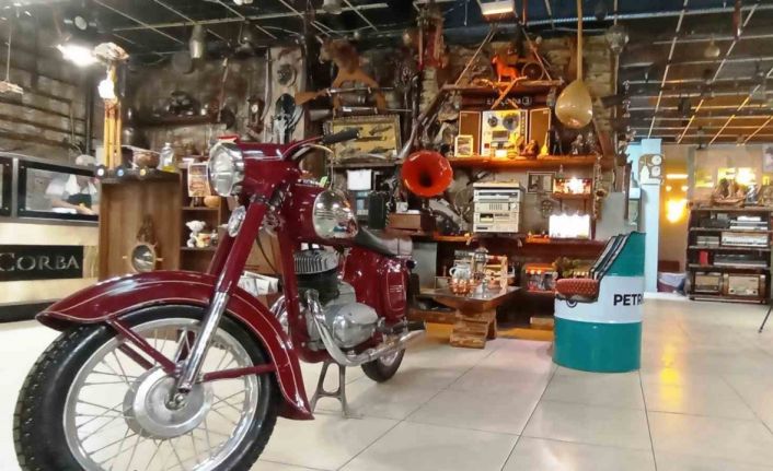 Konya’da küçük yaşlarda dedesinin 1968 model klasik motosikletine olan hayranlığı ile nostaljik malzemelere merak salan 46 yaşındaki Ramazan Bademci, Türkiye’nin çeşitli bölgelerine gittiği gezilerde topladığı eşyalarla çorbacı dükkanını zamanla adeta bir klasik malzemeciye çevirdi. İş yerine gelen ve içeri girdiklerinde şaşkınlıklarını gizleyemedikleri dükkanda 100 yıl öncesinden günümüze kadar kullanılan aralarında çıra, lüküs lamba, gaz lambası, pürmüz, tüfek, terazi, telefon, radyo, saat ve klasik motosikletlerinde bulunduğu birçok eşya sergileniyor.