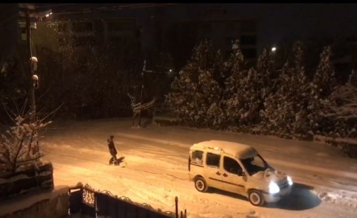 Karakoçan ilçesinde etkili olan kar yağışının ardından vatandaşlar gece saatlerinde sokakta kayarak eğlendi. Karda kaymak isteyen iki arkadaş ise farklı bir yöntem denedi. Vatandaşlardan biri aracı kullanırken, diğeri hafif ticari araca bağlı ipe tutunup kaydı. Hayatlarını tehlikeye atan vatandaşların ilginç eğlencesi ise bölgedekiler tarafından cep telefonu ile görüntülendi.