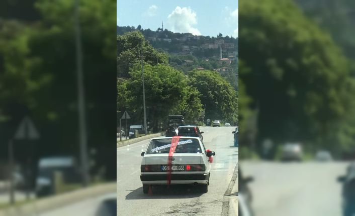 Zonguldak’ta öğlen saatlerinde bir otomobilin arkasındaki yazı görenlere hayrete düşürdü. Otomobil sahibi arabasını gelin arabası gibi süsleyerek arkasına ’gelin adayları aranıyor’ yazısı astı. Trafikte otomobili görenler vatandaşlar ise hem güldü hem de ellerine aldıkları telefonlarla o anları sosyal medya da paylaştı. Otomobil bir süre sonra gözden kayboldu.Aracının arka camına yazdığı yazıyla görenleri şaşkına çevirdi