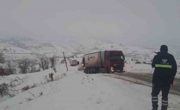 Adıyaman’ın Sincik-Kahta karayolu Karakuş mevkiinde yoğun kar yağışından dolayı bir çok araç yolda mahsur kaldı. Mahsur kalan araç sürücüleri bulundukları yerden kurtulabilmek için yoğun çaba sarf etti.