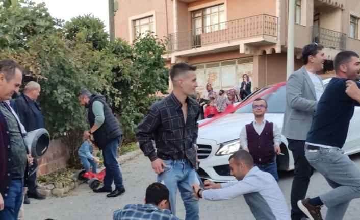 Mudanya’nın Yaylacık köyünde geleneklere uygun düğün yapan Burak Kırıkoğlu’nun düğününe köydeki tüm arkadaşları katıldı. Köyün girişinde düğün arabasının önünü kesen gençler gelin arabası önünde eğlenmeye başladı. Gelin aracının önünde 6 saat eğlenen köyün gençleri bu esnada bol bol eğlenip damada yapmadığını bırakmadı. Damadın kıyafetlerini yırtan gençler bu şekilde damada gelin aracının önünde piknik tüpünde menemen yaptırdı. Havanın kararmasıyla birlikte eğlence sona erdi.