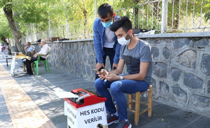 Diyarbakır’da arzuhalcilik yapan Mehmet Ali Askan, geçim kaynağını artırmak için Hayat Eve Sığar (HES) kodu işine de girdi. Kodu alamayan vatandaşlara yardımcı olan Askan, bu şekilde kendisine yeni bir gelir kapısı oluşturdu.