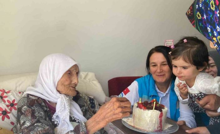 Karaman Eğitim ve Araştırma Hastanesine bağlı Evde Sağlık Hizmetleri Birimi, bakıma muhtaç ve yatalak hastaların umudu olmaya devam ediyor. Düzenli aralıklarla hastaları ziyaret eden birim hem onların bakımını yapıyor hem de onlara moral veriyor. Ekipler 2 gün önce 100 yaşına basan Emine Yiğitoğlu’nun Mahmudiye Mahallesi 691. Sokak’taki evine giderek ona doğum günü sürprizi yaptı. Emine nine torununun çocuğuyla birlikte doğum günü pastasındaki mumları üflerken duygusal anlar yaşandı. İstiklal Harbi’nde doğduğunu söyleyen Yiğitoğlu’nun kimlikteki doğum tarihine göre 100 yaşına girdiği, ancak çocukları annelerinin gerçek yaşının 100’den fazla olduğunu söyledi. 7 çocuk, 31 torunu olan Emine nine, 2 de torununun torununu gördü.