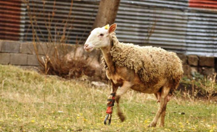 Ayağı kopan koyun protezle yeniden koşuyor