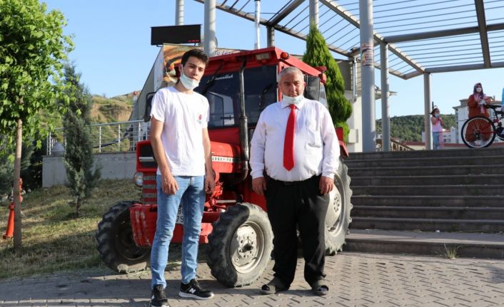 Babadan yadigar traktörle paket servisi yapıyor