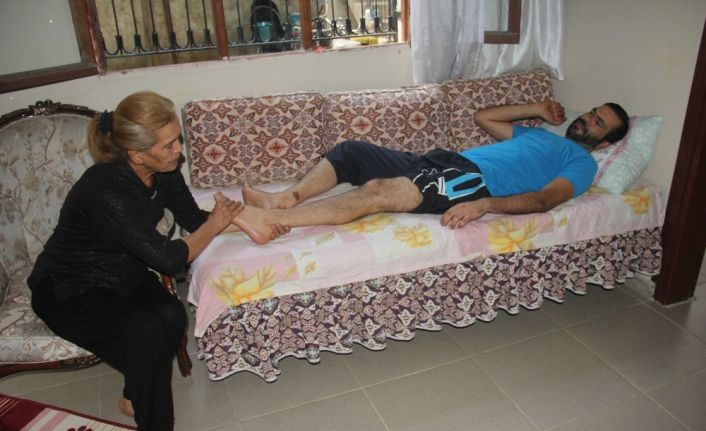 Adana’da 13 yıl önce inşaatta çalışan arkadaşını ziyarete gittiği sırada bacağına beton düşen genç, iki ay sonra aynı bacağını tekrar kırdı. Geçirdiği operasyonlar sonunda sol bacağı diğerinden 5 santim kısa kalan genç, yatalak oldu.