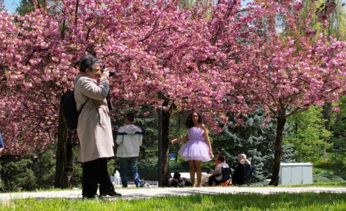 Ankara Dikmen Vadisi’nde çiçek açan Türk-Japon dostluğunun simgelerinden ve baharın müjdecisi kabul edilen sakura ağaçlarını gören vatandaşlar, parka akın etti.