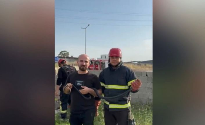 Osmaniye’de bahçeye giren bir buçuk metrelik kara yılanı yakalayan itfaiyeci yılana su içirirken, bazı vatandaşların yılanla hatıra fotoğrafı çektirdiği anlar da kameralara yansıdı.