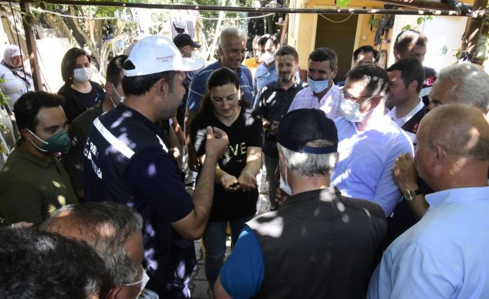 Kurum, daha sonra Kaymakamlık binası önünde muhtarlarla bir araya geldi.