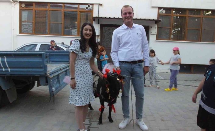 Erkek babası Eşref Onur ise, "Geleneklerimizi, göreneklerimizi yaşatmak için gelin kızımıza koçumuzu getirdik. Kurban Bayramı mübarek olsun. Bütün Türkiye’ye hayırlı uğurlu olsun" dedi.