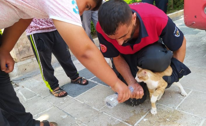 Şanlıurfa’nın tarihi ve turistik mekanları arasında yer alan Balıklıgöl’de ağaçta mahsur kalan kedi, itfaiye tarafından kurtarıldı.