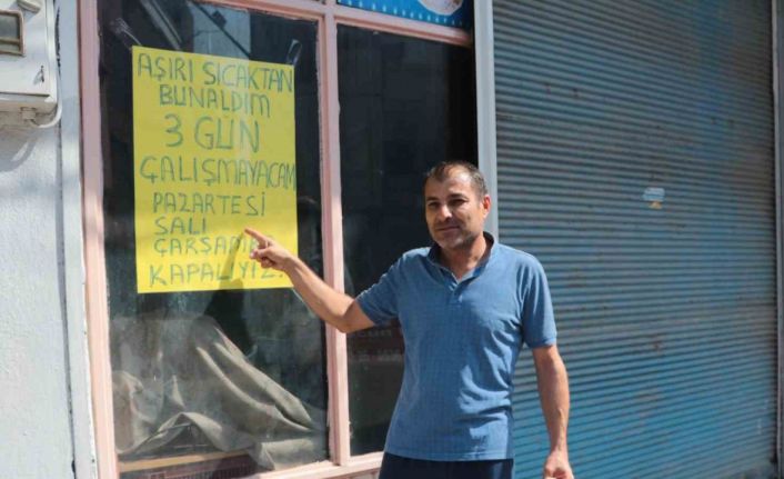 Hal böyle olunca birçok vatandaş evinden dışarı çıkmamaya başladı. Kentte uzun yıllardır fırıncılık yapan Ramazan Şeker (44) ise merkez Seyhan ilçesine bağlı Yeşilyurt Mahallesi’ndeki dükkanının camına, ‘Aşırı sıcaktan bunaldım. 3 gün çalışmayacağım Pazartesi, Salı ve Çarşamba kapalıyız’ yazısını yazıp Mersin’e denize gitti.