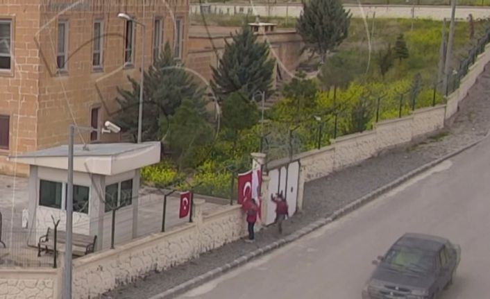 Batman’da yaşayan iki çocuğun okul dönüşü emniyet müdürlüğü duvarına asılı bulunan Türk bayrağını öpmesi güvenlik kamerasına yansıdı.