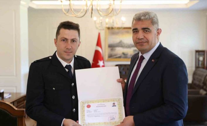 DÜZCE(İHA) – Türkiye ile Ermenistan arasında oynanan şampiyonada Azerbaycan bayrağına göstermiş olduğu hassasiyet ve saygı nedeniyle Polis Memuru Ramazan Şahin, Düzce Valisi Selçuk Aslan tarafından başarı belgesi ile ödüllendirdi.