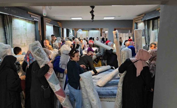 Karabük kent merkezinde bulunan bir halı mağazası yaklaşan kurban bayramı öncesi yüzde 70’e varan indirim kampanyası öncesi ilk 100 müşteriye bedava halı vereceğini duyurdu. Sosyal medya üzerinden yapılan duyuru sonrası mağaza önünde uzun kuyruklar oluştu. Saatler öncesinde mağaza önünde kaldırımda uzun kuyruk oluşturan vatandaşlar kampa saatinin başlaması ile mağazaya giriş yaptı. Mağazanın üst katında bulunan ve paketlenmiş çeşitli ebatlardaki bedava halıları almak isteyen vatandaşlar adeta birbiri ile kıyasıya mücadele etti. Kısa sürede bedava halıları alan vatandaşların yanı sıra bazı vatandaşlar yanlış halıları alıp getirmeye çalışınca görevlileri vatandaşları güçlükle ikna etti.