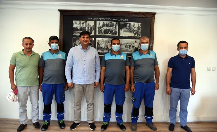 Muğla’nın Fethiye ilçesinde, temizlik işçileri yolda bulduğu ve içinde 12 bin 300 lira olan çantayı sahibine teslim etti. Belediye Başkanı Alim Karaca da gönlü güzel işçileri bu örnek davranışlarından dolayı çeyrek altın ile ödüllendirdi.