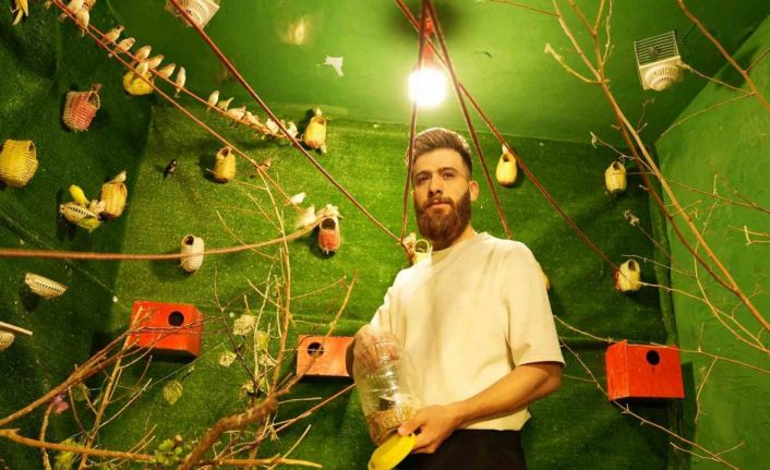 Mardin’in Kızıltepe ilçesinde berber salonu işleten Cuma Şeyh Hasan ve kardeşi Yusuf Şeyh Hasan, iş yerinin bir köşesinde 6 çeşit kuş türünden toplam 140 kuş türü besliyor.