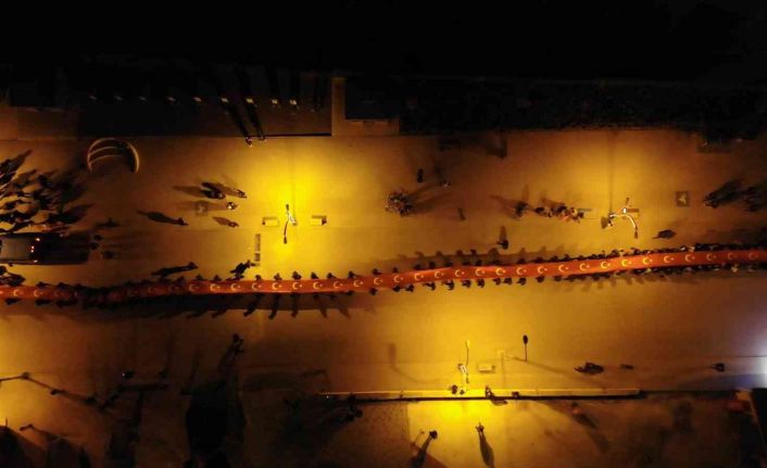 Kırıkkale’nin Yahşihan ilçesinde yüzlerce vatandaş, 29 Ekim Cumhuriyet Bayramı kutlamalarında bin metre uzunluğundaki Türk bayrağıyla yürüyüş yaptı. Kutlamalar, havai fişek gösterisiyle son buldu.