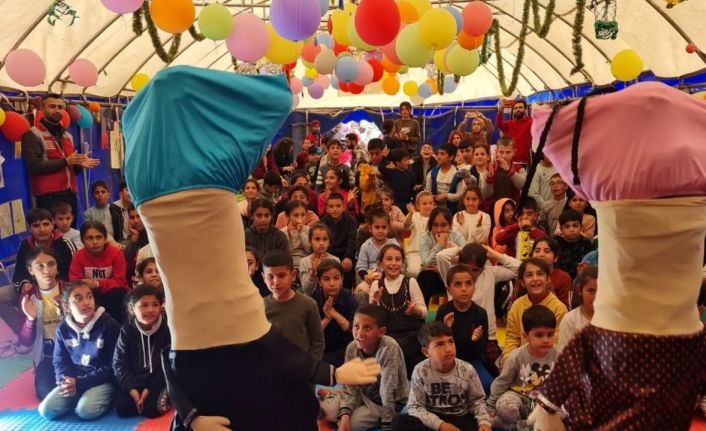 Şehr-i Bingöl Tiyatrosu ekibi, depremin vurduğu Adıyaman’da çadır kenti ziyaret ederek çocukları eğlendirdi.