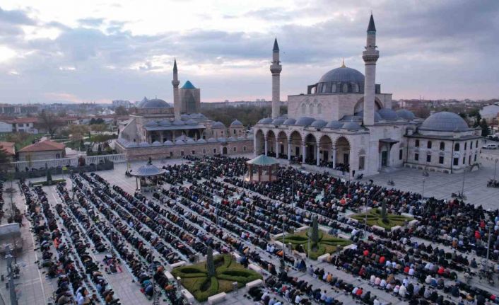 Konya’da binlerce vatandaş, sabahın erken saatlerinde Mevlana Meydanı’nı doldurarak bayram namazı kıldı.