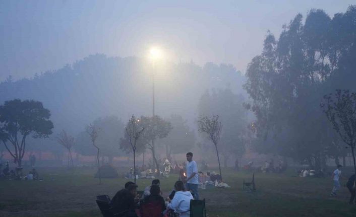 Samsun’da parkta toplanan binlerce kişi, geleneksel hale getirdikleri alışkanlık üzerine oruçlarını piknik yaparak mangal eşliğinde açıyor. Birçok mangalın aynı anda yanmasıyla da gökyüzünü duman bulutu kaplıyor.