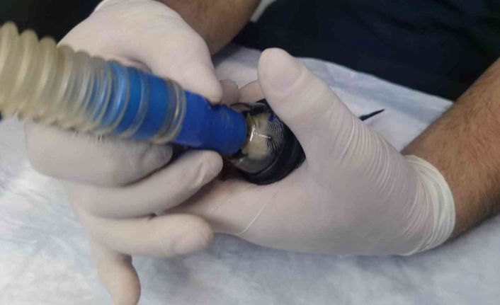 Zonguldak’ta bir yaşındaki “Turna” isimli muhabbet kuşunun rahmine sıkışan yumurta sezaryenle alındı.