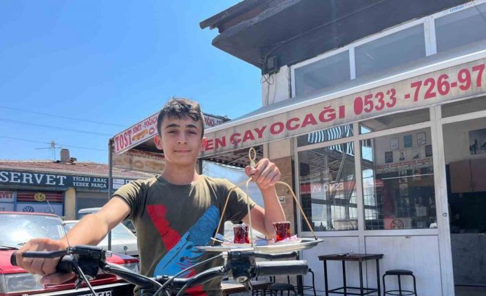“Çalışmaya başlayalı bir buçuk 2 ay oluyor. Yaz tatillerinde geliyorum, okuyorum. Daha hızlı olması için, bazen şikâyetler alıyorduk biraz geç geliyor diye. Bir deneyeyim dedim sonra hoşuma gitti, böyle devam etmek istedim. Normal çayı yürüyerek götürürken çay bardağın tabağına dökülüyordu, ondan şikayet alıyordum. Şu an tabak taşması da azaldı, iyi de oldu. Günde 400 ile 600 bardak çay dağıtımını bisikletimle yapıyorum. Müşteriler ilk başta ‘bisikletle olmaz, dökersin’ falan dediler sonra alıştılar.”