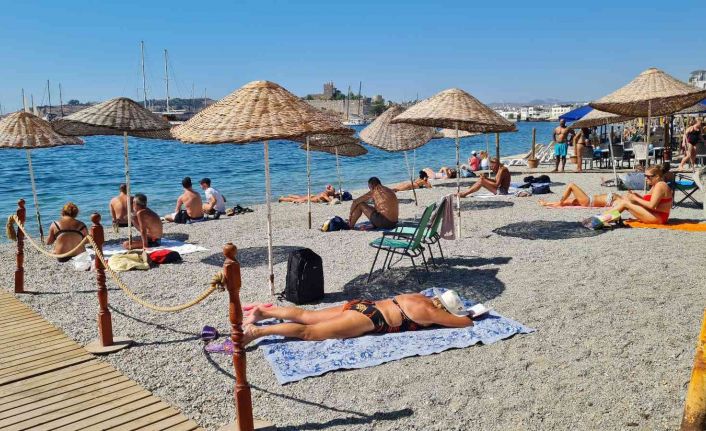 Hava sıcaklığının 28, deniz suyu sıcaklığının 22 derece ölçüldüğü Muğla’nın Bodrum ilçesinde yazdan kalma günler yaşanıyor.